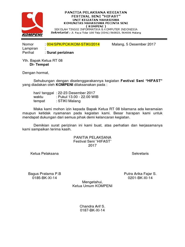 Kapolsekta cidadap bandung di tempat dengan hormat, bersama dengan surat ini kami selaku panitia kegiatan amc (abi music charity) yang merupakan salah satu program kerja himpunan mahasiswa program studi ilmu administrasi bisnis. Contoh surat keterangan kerja (paklaring) untuk klaim bpjs. Setiap acara yang melibatkan masyarakat pasti akan menimbulkan keramaian. Savesave contoh surat izin keramaian for later. Dalam dunia sekolah, kuliah, maupun dunia kerja, terkadang para siswa atau pekerja membutuhkan surat persetujuan dari orang tua untuk mendapatkan izin mengukuti kegiatan tertentu, seperti kemah, magang, kegiatan pramuka, kegiatan kampus, dsb.