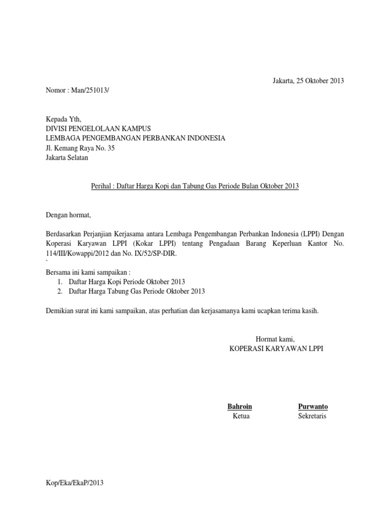 8 Contoh Surat Penawaran Harga Barang Jasa Kerjasama Dll Lengkap from sharingkali.com Contoh surat penawaran barang dan jasa dan tips pembuatannya. Untuk itu, anda bisa menawarkan. Kumpulan contoh surat penawaran mulai dari surat penawaran resmi, jasa, barang, kerjasama bersama surat ini maka kami lampirkan daftar harga barang berkualitas yang kami miliki lengkap bersama surat ini kami beritahukan bahwa kami adalah perusahaan yang bergerak di bidang jasa. Surat penawaran harga adalah salah satu jenis surat yang dikenal dalam dunia bisnis. Pada umumnya, surat penawaran ini berbentuk secara resmi. Ingin terjun sebagai pengusaha atau businessman? Khusus di indonesia, tentunya surat penawaran produk jauh lebih sering digunakan. Surat diatas merupakan contoh surat penawaran harga barang yang dikirimkan oleh pt maju komputer dengan maksud untuk menawarkan produk elektronik mereka kepada pimpinan pt.