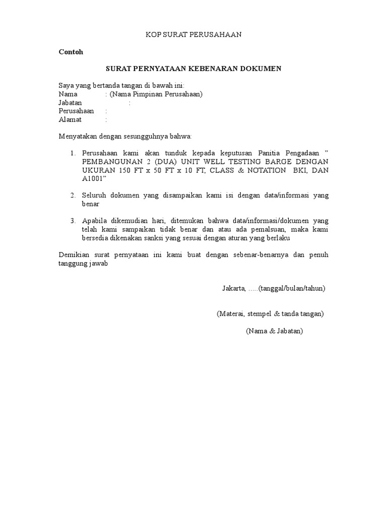 Surat pernyataan ini juga didukung oleh data yang ada di kantor kua dan kartu tanda penduduk. Surat pernyataan adalah surat yang dibuat untuk menyatakan bahwa seseorang telah atau tidak pernah surat pernyataan bentuk formulir ini nantinya tinggal dilengkapi saja dan ditambahkan dengan data pribadi pemberi pernyataan sebelum. Jika terdapat data yang tidak sesuai antara yang tertulis dengan kenyataan yang ada, maka penulis dapat dikenakan sanksi. Seperti surat pernyataan kerja bermaterai, perjanjian, dan pernyataan belum menikah. Contoh surat pernyataan adalah surat yang digunakan untuk menyatakan sesuatu kepada penerima.