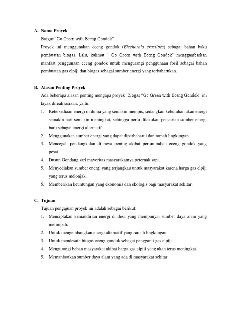 Lalu, kalimat go green with eceng gondok menggambarkan manfaat penggunaan eceng gondok untuk mengurangi penggunaan fosil sebagai bahan pembuatan gas elpiji dan biogas sebagai sumber.