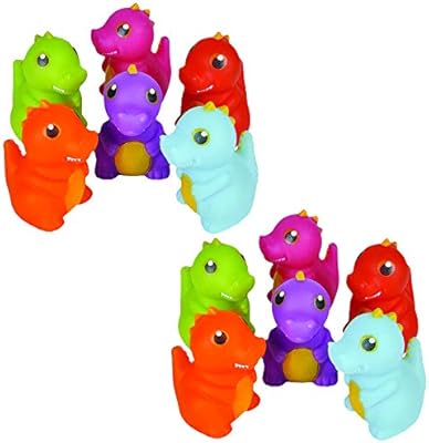 Whether your little one is into pirates or princesses, you'll find our boy bath toys include a blue polka dot rubber duckie, monster truck party squirties and race car party squirties. Rinse and dry toys after each bath; Bpa, phtahalate and lead free. These little dinosaurs are adorable & the colors are vibrant. Make bath time fun with these bright and colorful bath squirties.